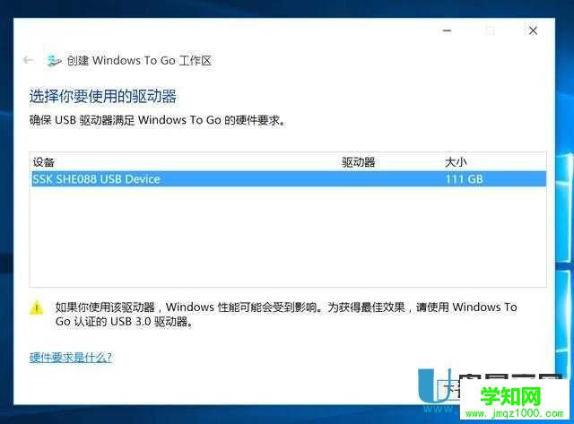 6、然后選擇你的移動硬盤,比如這里的ssk的移動硬盤,因為不是認證的移動硬盤,所以會提示性能可能會影響,忽略它即可。