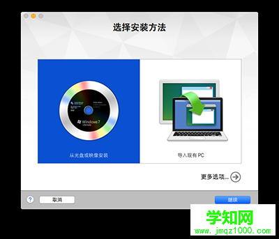 2、如果沒(méi)有安裝任何虛擬機(jī),會(huì)彈出“創(chuàng)建虛擬機(jī)”界面,我們可以選擇從光盤(pán)或映像文件中安裝,也可以導(dǎo)入同一個(gè)網(wǎng)絡(luò)中的 PC。當(dāng)然快捷、最簡(jiǎn)單的方式依然是選擇下載的 Windows 鏡像
