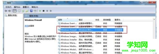 找到“Windows Firewall”(防火墻)服務,雙擊該服務。