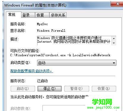 在彈出的“Windows Firewall的屬性”框中,點擊“啟動”