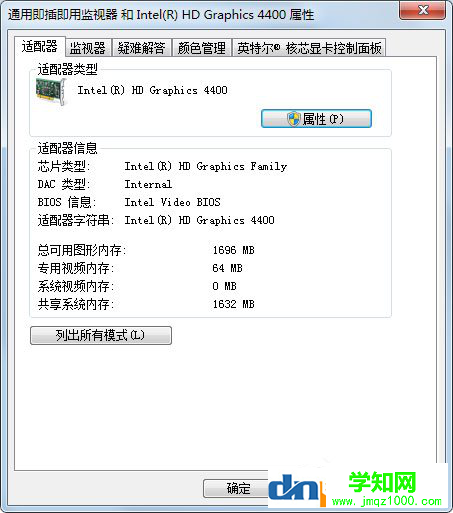 4、在彈出的屏幕分辨率對話框中,點擊“高級設置”,后系統彈出“通用即插即用顯示器”屬性對話框;
