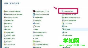 2在打開的控制面板中,左鍵雙擊Internet選項;