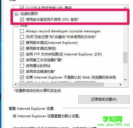 加速的圖形 - 使用軟件呈現而不使用GPU呈現前面的復選框內打了勾;