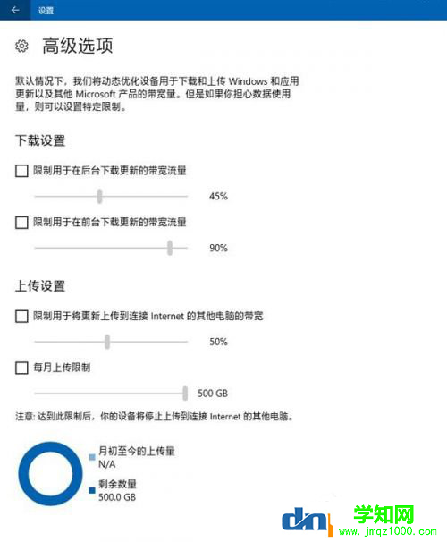 不過路徑比較難找,要在更新與安全-高級選項-傳遞優化-高級選項當中才可以看到,上傳和下載流量都可以限制在原本的5%。