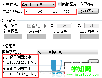 (1)、菜單樣式選擇為 真彩圖形菜單 ,屏幕分辨率設置為 1024 768