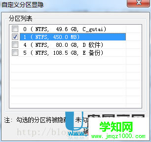 (5)、因為啟動Win7(C盤)時,要保護Win10(D盤)的文件不被破壞,所以,這里要選擇 啟動時更改分區顯隱狀態 ,并定義D盤(0磁盤、1分區)為隱藏狀態。