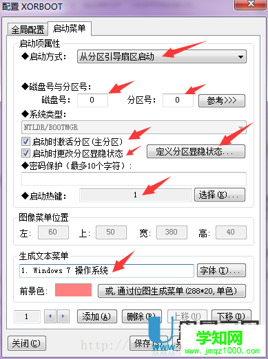 啟動菜單可以定義啟動的系統的數量、啟動方式、加載的磁盤號與分區號等信息。