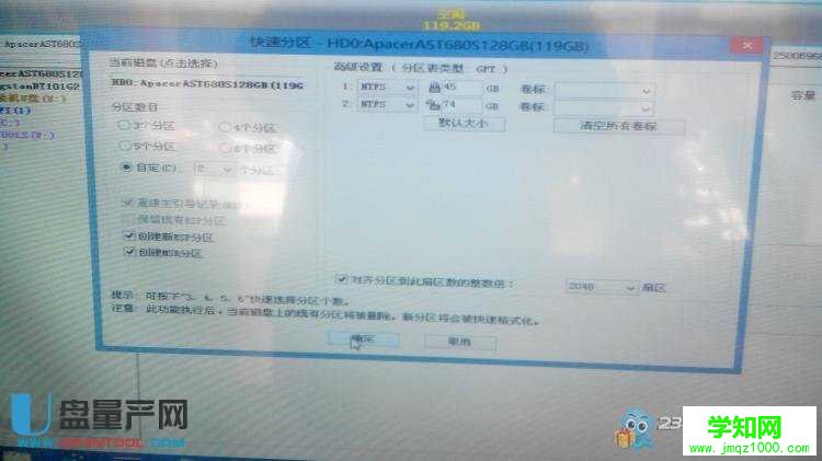 用快速分區給硬盤分區 分區數自行制定 注意要對齊一下 扇區數自己制定