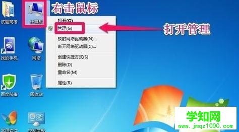 我們在桌面的計算機(jī)圖標(biāo)上單擊鼠標(biāo)右鍵,然后選擇管理!
