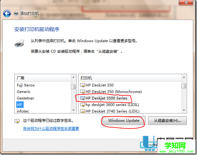 如果列表中沒有 HP Deskjet 3500 Series ,請點擊上圖中 Windows Update 進行在線更新,大約要耗費10分鐘時間,請耐心等待。