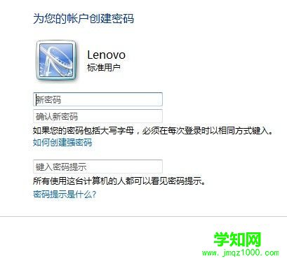 5,輸入密碼并確認,必要時可以設置強密碼和密碼提醒(關于強密碼和密碼提醒可單擊對應的鏈接參考幫助文檔),并單擊“創建密碼”。