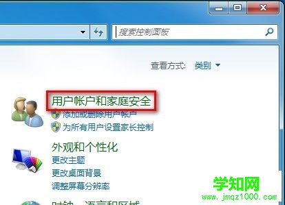 2,如打開的是類別視圖,點擊"用戶賬戶和家庭安全"。