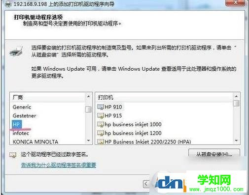 在這里選擇HP,然后在右側找到你要安裝的型號;