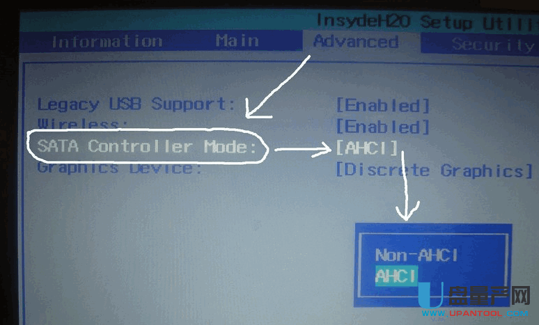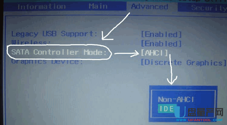 選中 SATA 那個選項,按回車后出來兩個選項,然后選中 AHCI 那個選項,將他切換為 Compatibility 或者 IDE 即可。