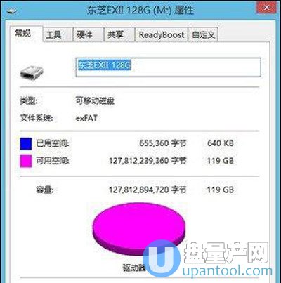 使用U盤的朋友肯定知道我們的U盤是有不同的文件系統的,也就是分區格式,比如常見的FAT32格式和NTFS格式,當然還有exFAT格式,要查看我們的U盤目前是使用的什么格式的文件系統,可以點到U盤的盤符,然后點擊鼠標右鍵屬性就能看到文件系統了,如下圖
