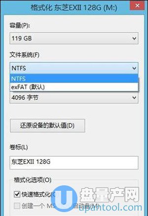 2、NTFS會對U盤的壽命造成損傷,但它支持大于4G的單個文件存放,兼容性也算不錯。