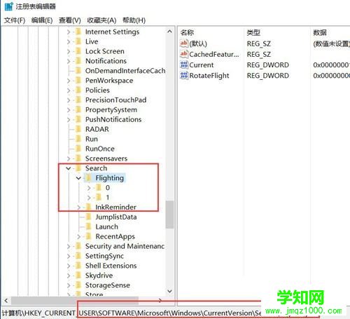 HKEY_CURRENT_USERSoftwareMicrosoftWindowsCurrentVersionSearchFlighting