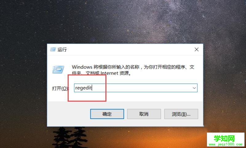 1、首先,請大家在桌面上按下Windows徽標鍵+R鍵,打開運行菜單命令,輸入“regedit”關鍵詞,打開注冊表編輯器。