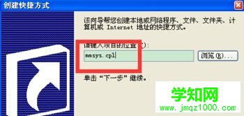2.之后會彈出一個創建快捷方式的窗口,在項目位置這里填寫“mmsys.cp”,然后點擊進入到下一步。