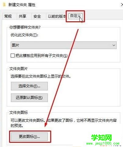 2、在屬性界面中點(diǎn)擊“自定義”--“更改圖標(biāo)”;