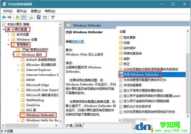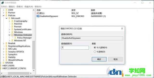 2、找到選項HKEY_LOCAL_MACHINESOFTWAREPoliciesMicrosoftWindows Defender;
