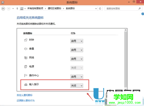 點(diǎn)擊通知區(qū)域圖標(biāo)窗口下面的點(diǎn)擊啟用或關(guān)閉系統(tǒng)圖標(biāo)