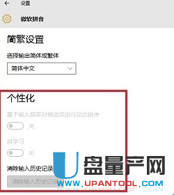 四、Win10系統(tǒng)拼音輸入法設(shè)置里個(gè)性化灰色不可選