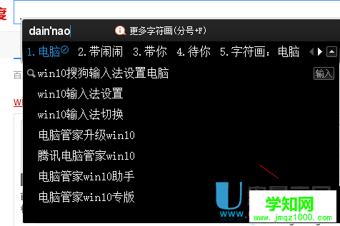 我們需要在搜索的框里面輸入詞語(yǔ),這時(shí)候會(huì)有候選的,我們點(diǎn)擊后面的設(shè)置按鈕。