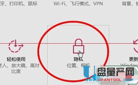 使用WIn+I組合鍵打開(kāi)Win10設(shè)置,點(diǎn)擊 隱私 選項(xiàng)