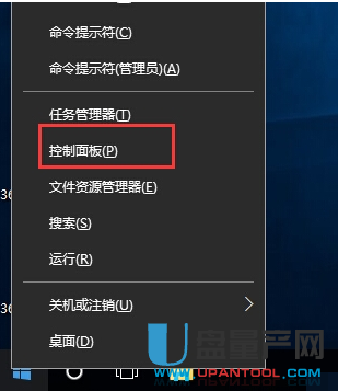 在win10桌面右鍵點(diǎn)擊 開(kāi)始 按鈕,然后選擇控制面板