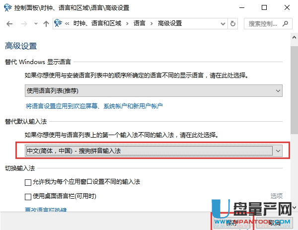 在替代默認(rèn)輸入法中選擇你想要設(shè)置為默認(rèn)的輸入法如:搜狗拼音