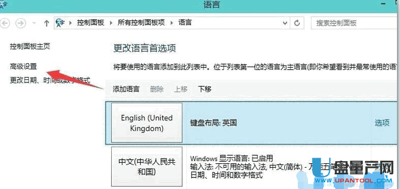 在控制面板打開(kāi) 時(shí)鐘、語(yǔ)言和區(qū)域 設(shè)置界面,選中 語(yǔ)言 設(shè)置