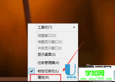 在win10系統(tǒng)任務(wù)欄的空白處點(diǎn)擊右鍵,然后選擇屬性