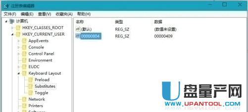 在Substitutes項(xiàng)中新建字符串值,名稱(chēng)為 00000804 ,鍵值為 00000409 ,關(guān)閉注冊(cè)編輯器,注銷(xiāo)后重新登錄