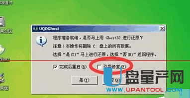 如果從硬盤(pán)啟動(dòng)失敗,則可以利用相關(guān)PE工具對(duì)引導(dǎo)分區(qū)進(jìn)行修復(fù)。例如我們可以利用 U啟動(dòng) PE工具,在進(jìn)入桌面后,點(diǎn)擊 Windows引導(dǎo)啟動(dòng)修復(fù) 工具對(duì)引導(dǎo)分區(qū)進(jìn)行修復(fù)。