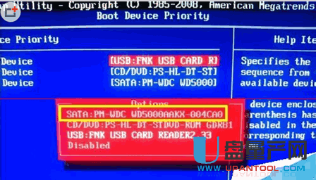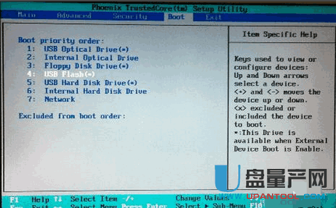 看Boot選項(xiàng),一般從硬盤(pán)啟動(dòng)是HDD開(kāi)頭的,上下鍵選中HDD,按F6鍵把HDD放到第一位,F(xiàn)10保存重啟。