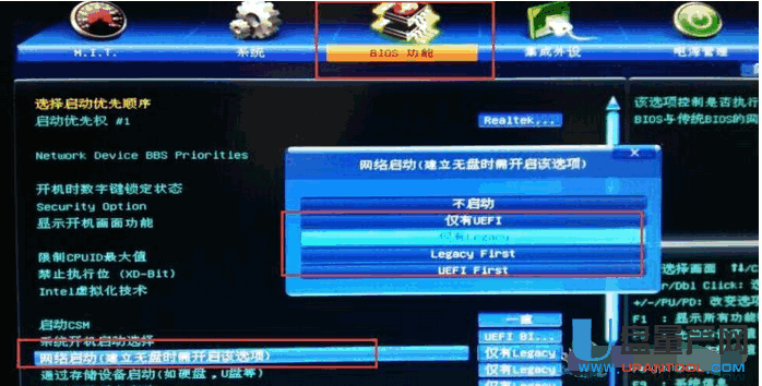 切換到中文界面之后,找到BIOS功能-網(wǎng)絡(luò)啟動(dòng)