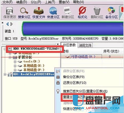 完成后,右擊左欄開(kāi)頭第一個(gè)HDO的盤(pán)符,選擇-重建主引導(dǎo)記錄。