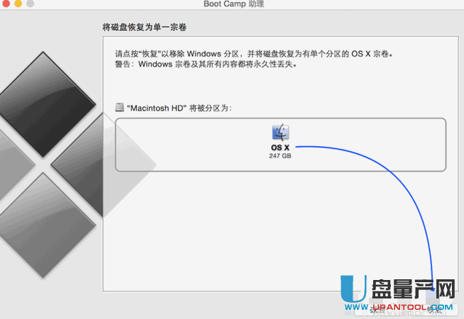 接著請(qǐng)選擇 恢復(fù) 按鈕,就可以刪除之前創(chuàng)建的 Windows 分區(qū)了。