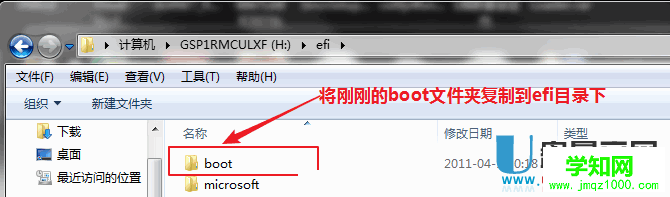然后把目錄下的boot文件夾復制到上一級目錄去, 也就是efioot,如圖所示: