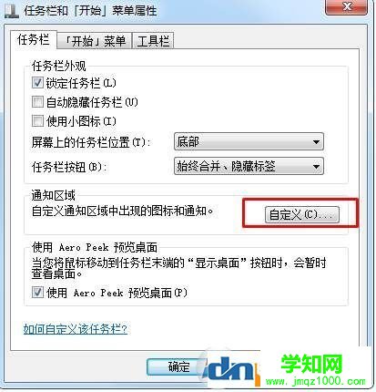 2、點擊通知區(qū)域的 自定義按鈕;這里是設(shè)置托盤圖標的地方。