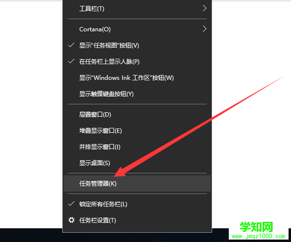 1、右擊任務(wù)欄空白處,彈出菜單中選擇任務(wù)管理器