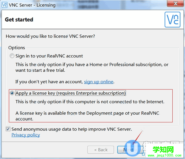 讓客戶安裝vnc server ,進入它的主界面,這時會彈出一個首選項,為用戶體驗反饋設置,這里不要理會,直接點 OK 即可。