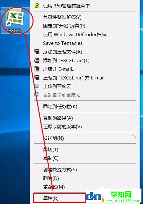 1、找到桌面Excel圖標,右擊,在菜單中選擇屬性;