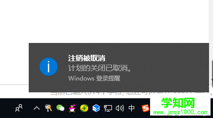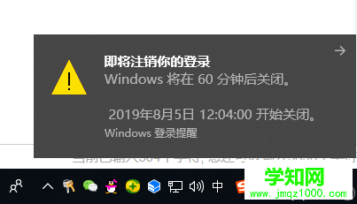 2、之后右下角就出現關機提示,將在60分鐘后關閉