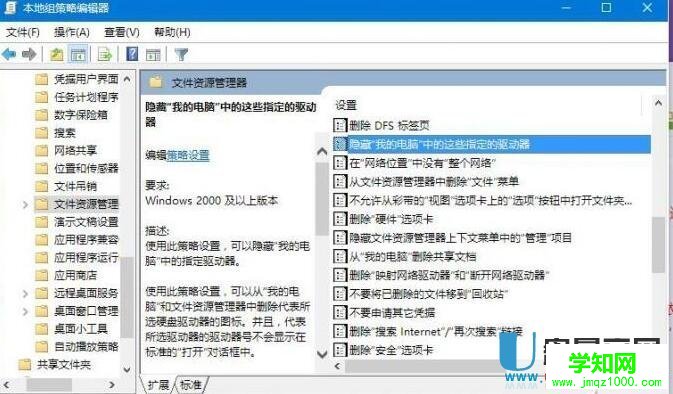 2、然后在組策略編輯器里點擊左側的 本地計算機策略 中依次選中 用戶配置 管理模板 Windows組件 文件資源管理器 。