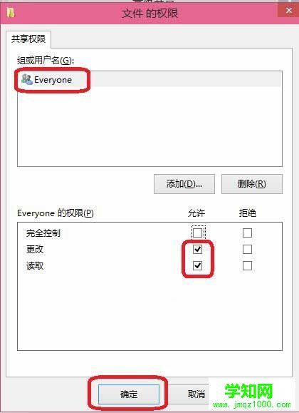 5、這里選擇 更改 權限,在單擊確定。這樣就完成了共享文件夾。如圖所示: