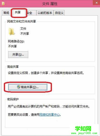 3、選擇 共享 在單擊 高級共享 。如圖所示: