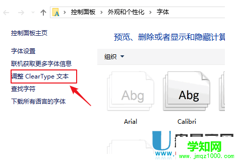 2、在字體的左邊點擊 調整 ClearType 文本 選項