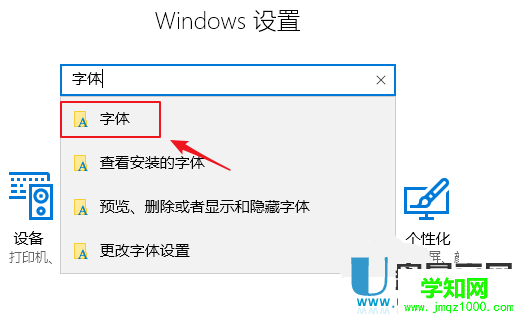 1、一樣的點擊開始,設置按鈕然后搜索字體,或者控制面板里找到字體圖標,點進去